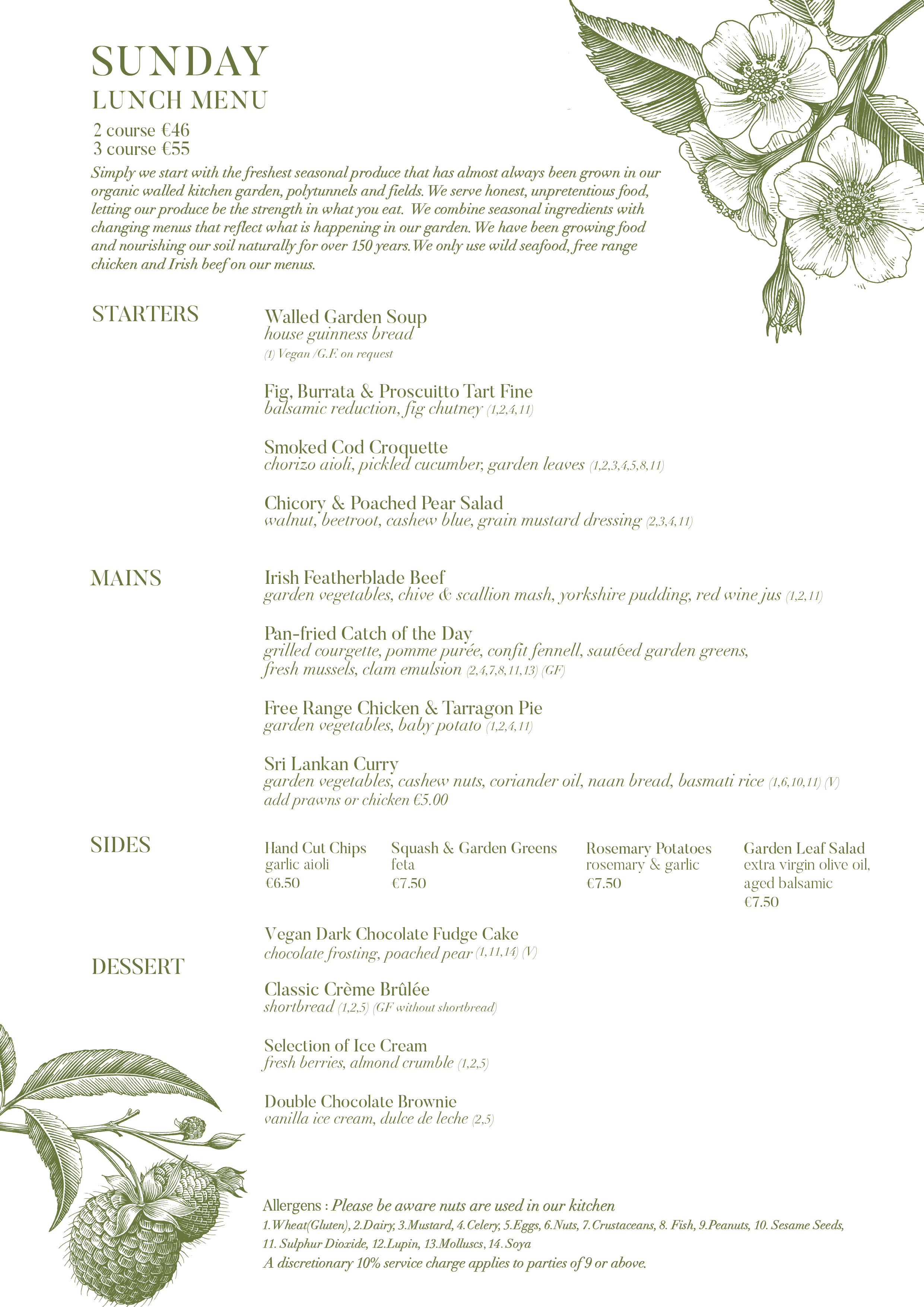On Sundays we offer a 2 or 3 course lunch set menu. Our a la carte menu is not available on Sunday.