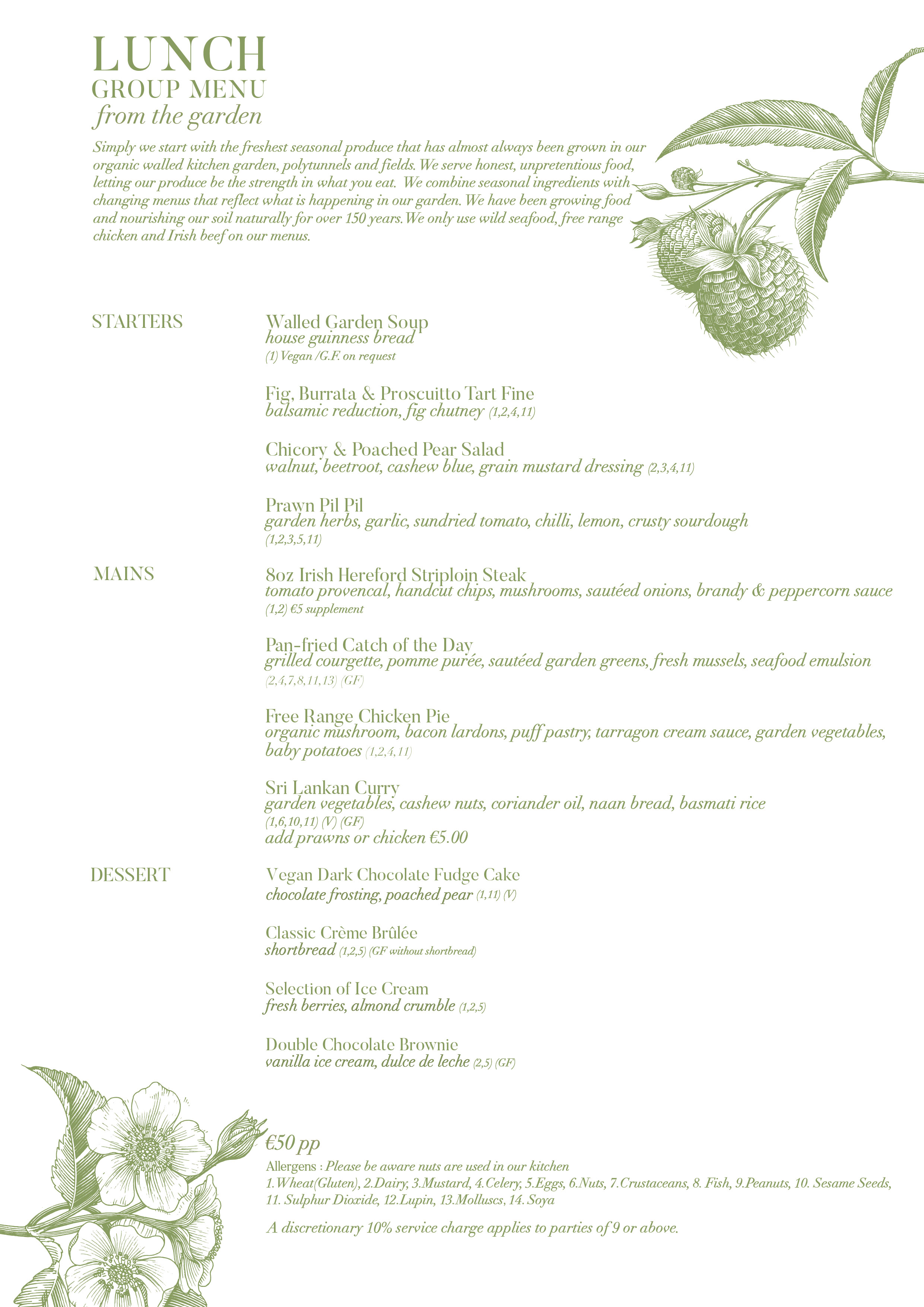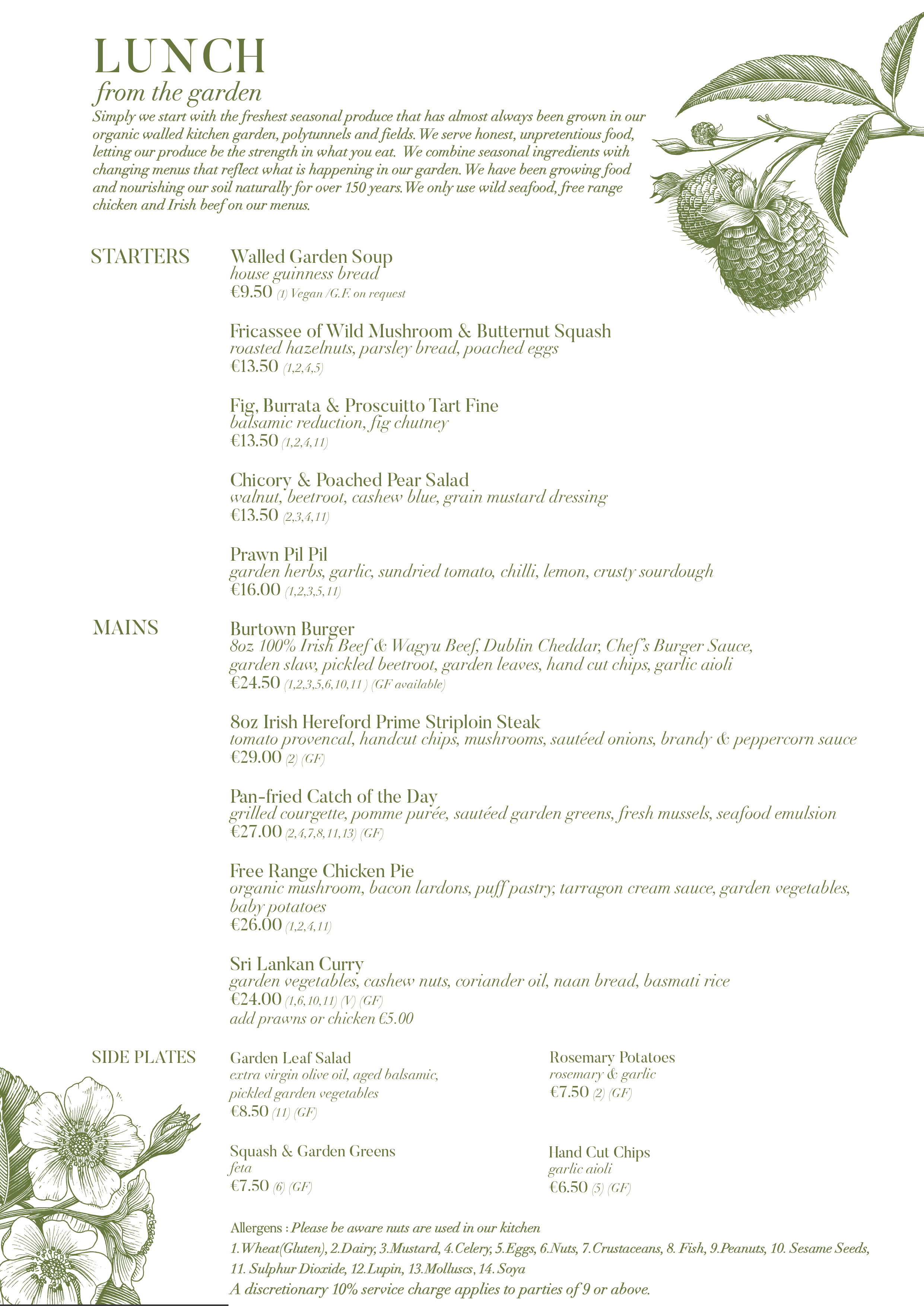 We serve Lunch Wednesday - Saturday 12:45 - 15:30